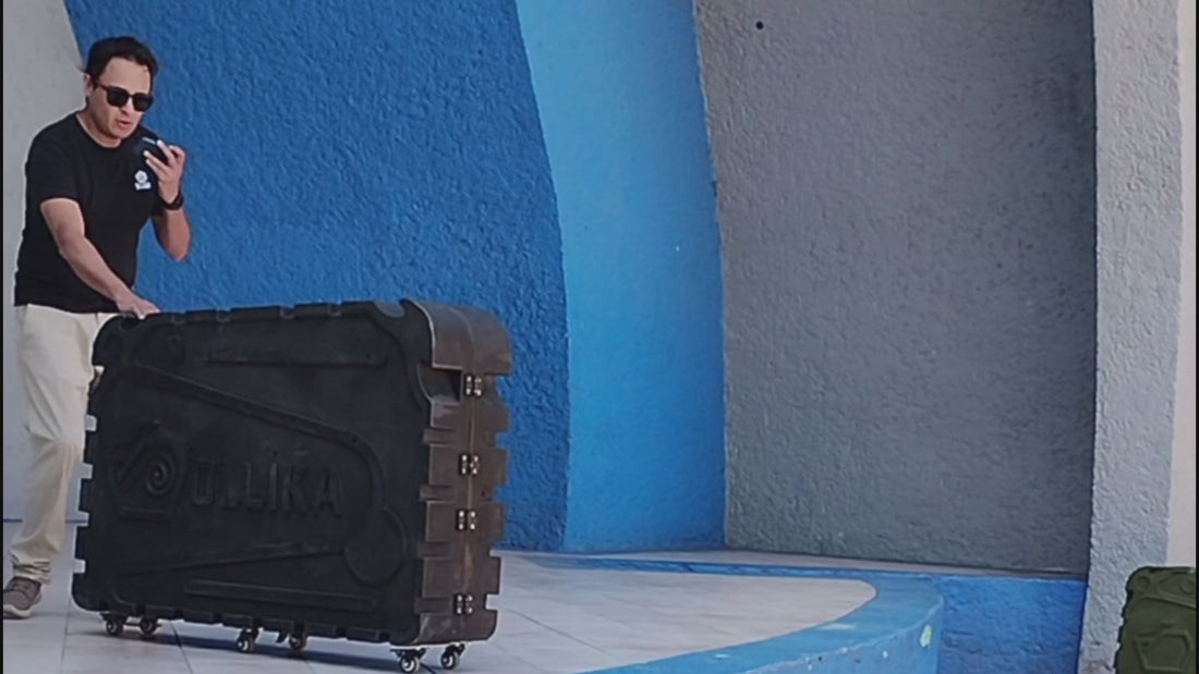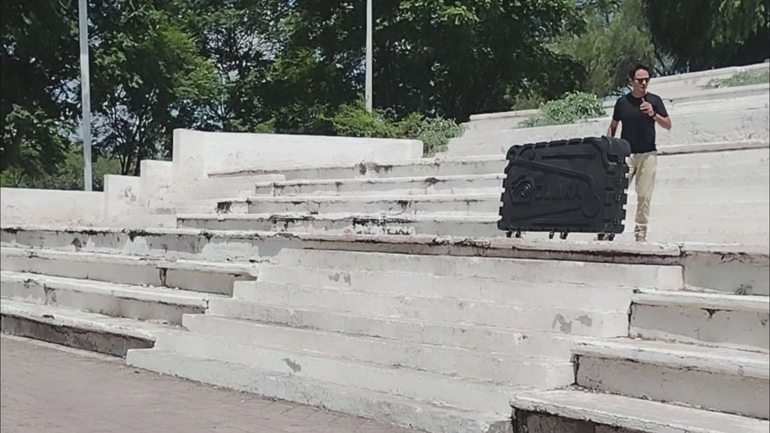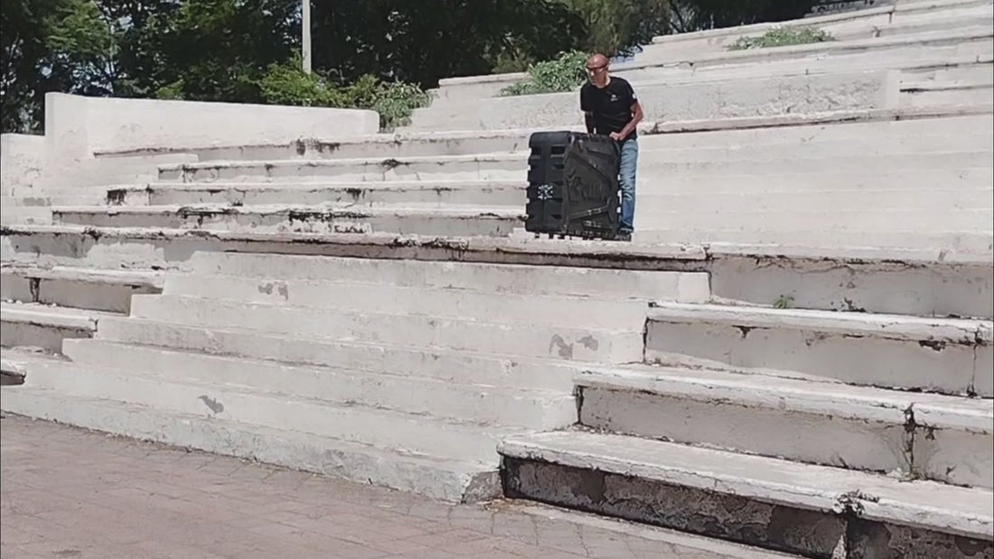 Tomamos impulso unos metros hacia atrás y lanzamos la maleta a una altura de 2 metros.